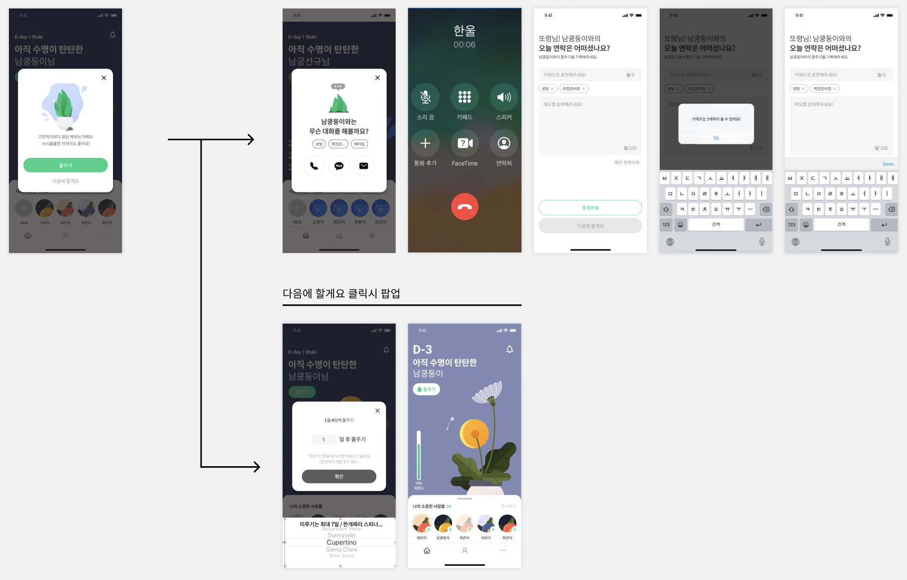 하지만 단순한 연락 유도 푸쉬알림 서비스는 지속적인 이용을 이끌어 낼 수 없는 한계점이 있었기에 우리는 엔터테인먼트적 요소인 식물의 성장 컨셉을 활용하여 사용자로 하여금 흥미를 유발시키기로 하였다.