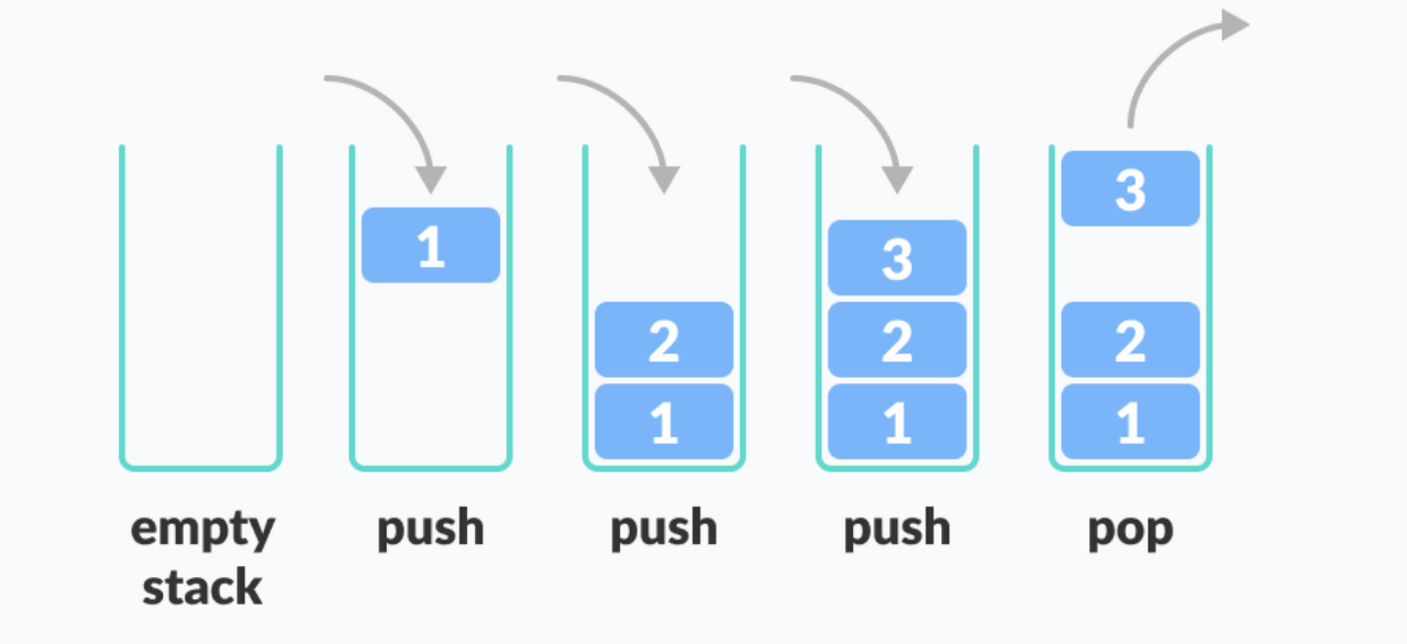 다른 말로는 "LIFO(Last In First Out, 후입선출) : 가장 마지막에 들어간 것이 가장 먼저 나옴" 이라고도 합니다.